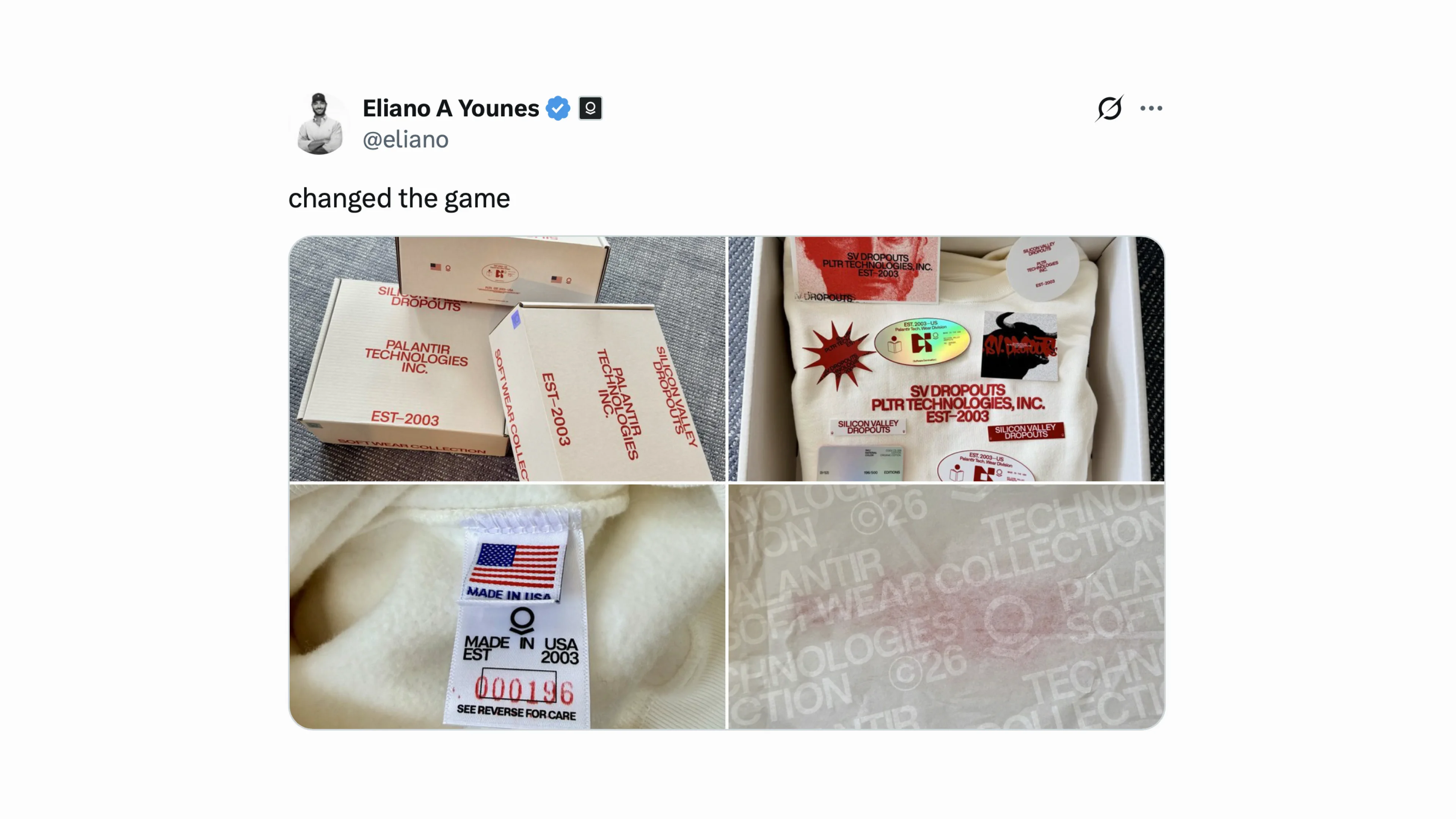 We see a worrying reverence for this mundanity in corporate design culture at the moment. The post-Virgil-Abloh weapons-intelligence company Palantir company merch. Intercom, Cohere, and Cursor, all updating their homepages with AI-generated impressionist textural backgrounds. Companies building their entire identity on stripping creative work from designers, and announcing it with - you guessed it - a designed-up brand reveal.